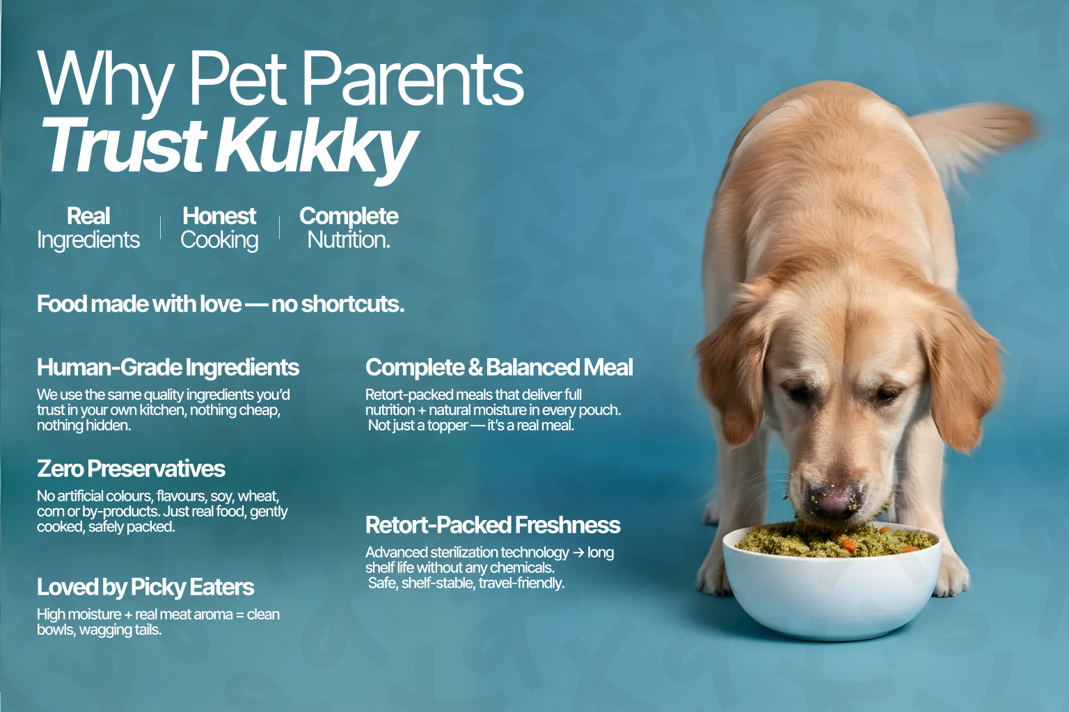 Retort-Packed, Human-Grade Wet Dog Food, Fresh, Nutritious & Vet Approved 35% OFF + Free Shipping + Trial Pack for First-Time BuyersUSE CODE: KUKKYFIRST35 Order Now Wholesome Recipes Add to Wishlist Add to Wishlist image/svg+xml Select options This product has multiple variants. The options may be chosen on the product page Chicken And Brown Rice Rated 4.83 out of 5 MRP ₹99.00 – ₹1,795.00Price range: ₹99.00 through ₹1,795.00 (incl. of all taxes) Add to Wishlist Add to Wishlist Add to Wishlist Add to Wishlist image/svg+xml Select options This product has multiple variants. The options may be chosen on the product page Chicken Grain Free Rated 4.89 out of 5 MRP ₹110.00 – ₹1,995.00Price range: ₹110.00 through ₹1,995.00 (incl. of all taxes) Add to Wishlist Add to Wishlist Add to Wishlist Add to Wishlist image/svg+xml Select options This product has multiple variants. The options may be chosen on the product page Tender Lamb Grain Free Rated 4.88 out of 5 MRP ₹125.00 – ₹2,500.00Price range: ₹125.00 through ₹2,500.00 (incl. of all taxes) Add to Wishlist Add to Wishlist What Parents Say Why Pet Parents Trust Kukky? Kukky Moments