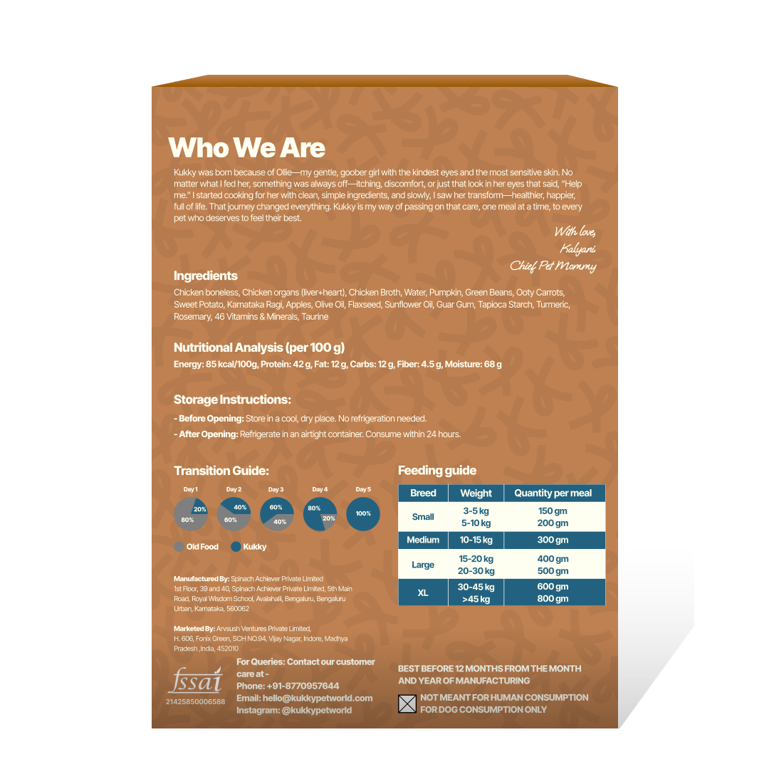 Infused with super veggies like pumpkin, carrots, sweet potato, and Shimla apples, plus egg yolk, flaxseed, and mutton oil, this recipe is a complete, grain-free solution designed to nourish from the inside out.