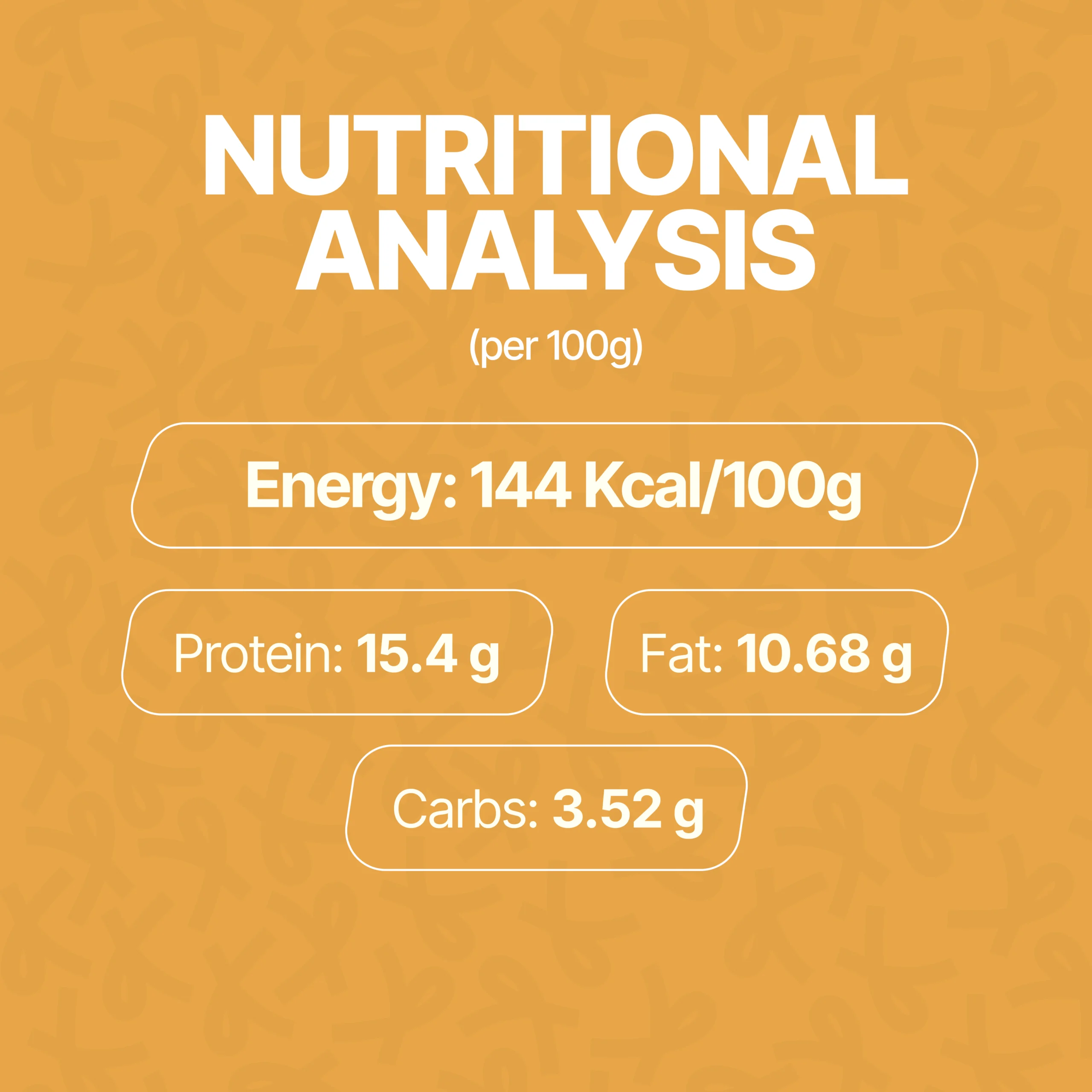 We add bone broth for extra palatability and hydration, and bone powder as a natural source of minerals to support strong bones and joints. Finished with flaxseeds for a healthy coat and skin.
