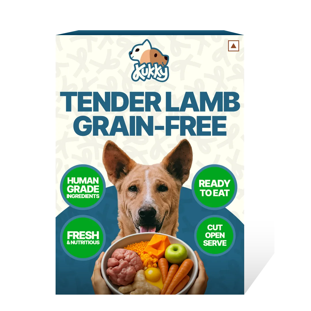 Kukky’s Tender Lamb Grain-Free recipe is a luxurious, nutrient-dense meal made for dogs who deserve more than the ordinary. We start with succulent lamb meat and nutrient-rich lamb organs, gently simmered in lamb broth for deep, meaty flavor your dog will crave.